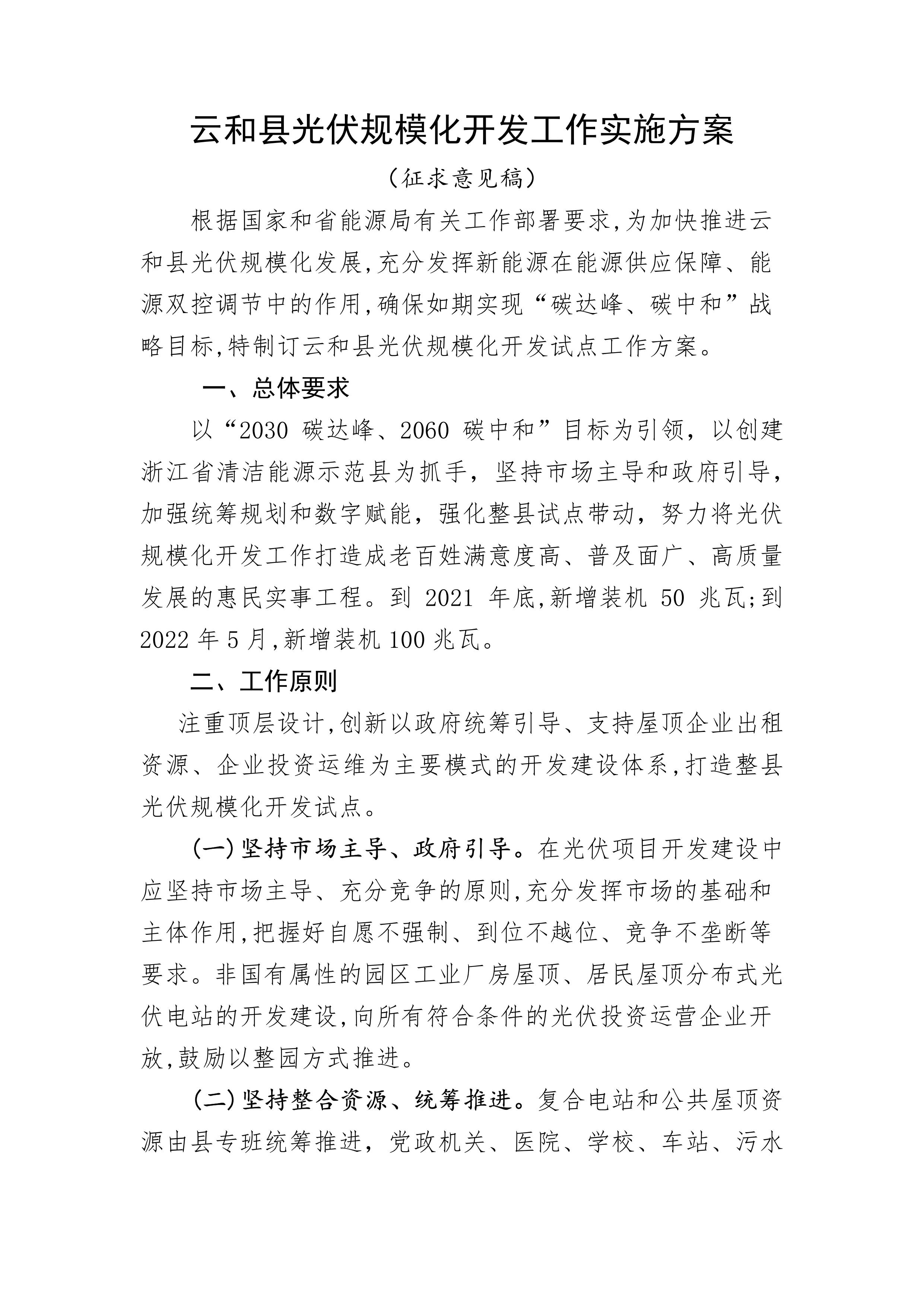 【政策通知】浙江云和:云和县光伏规模化开发工作实施方案(征求意见稿)