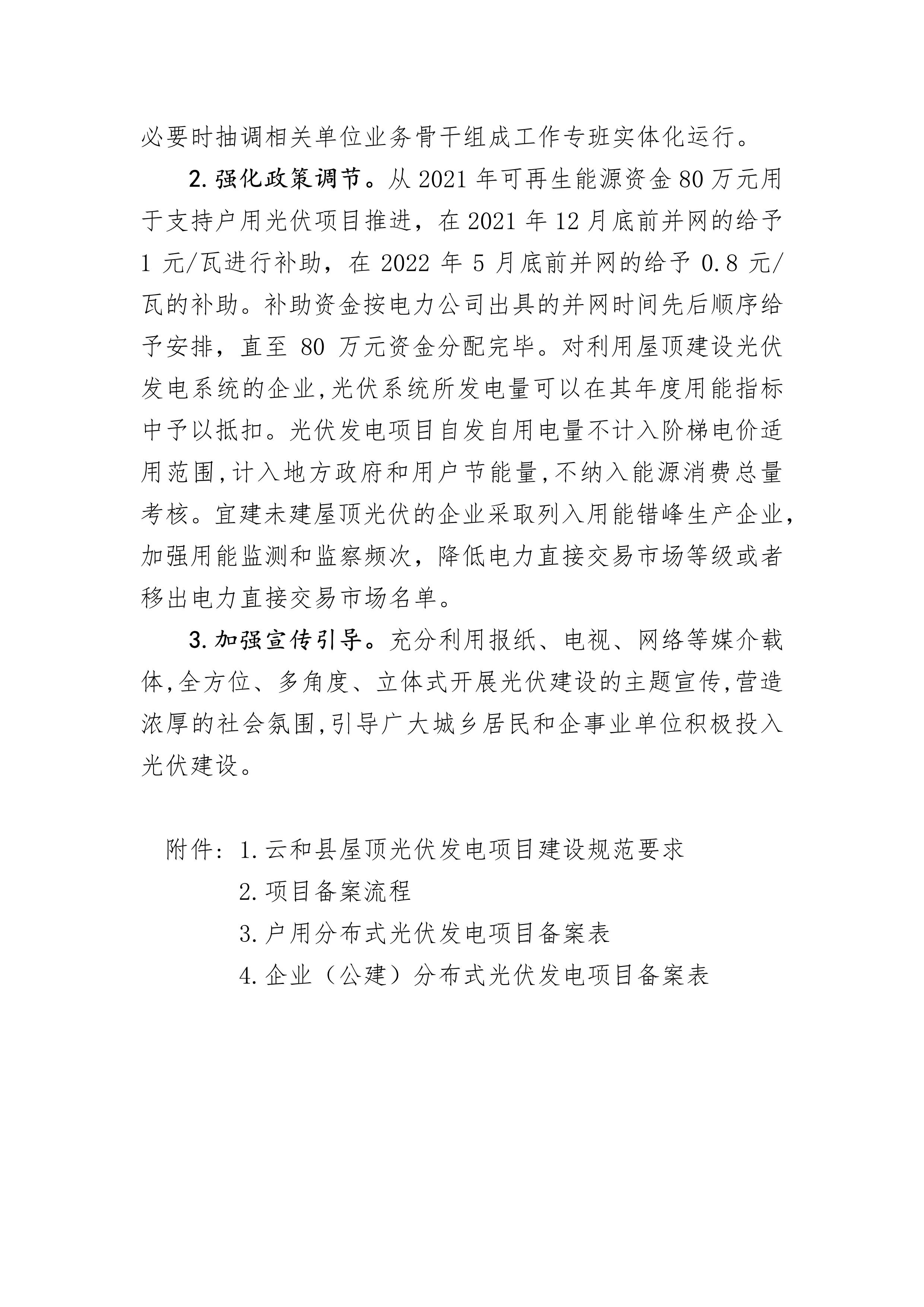 同步推进设施农业、工业和商业企业、小区和户用等屋顶光伏项目,最晚于2022年5月底前完成建设。探索实施农光、林光、水光互补项目。