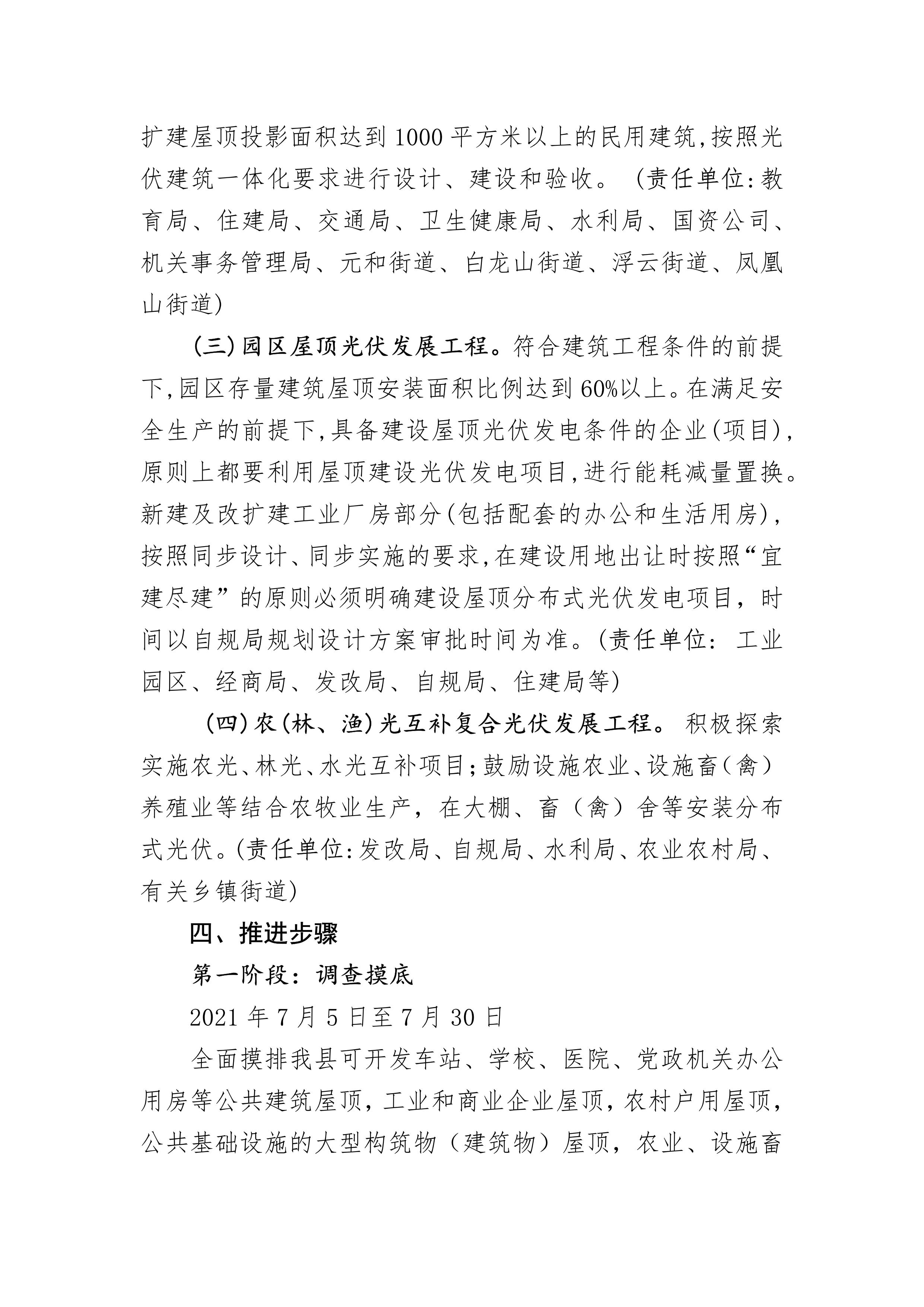 第一批项目实施,县属国有企事业单位等符合实施条件的办公用房屋顶,2021年12月前完成光伏板安装并网。