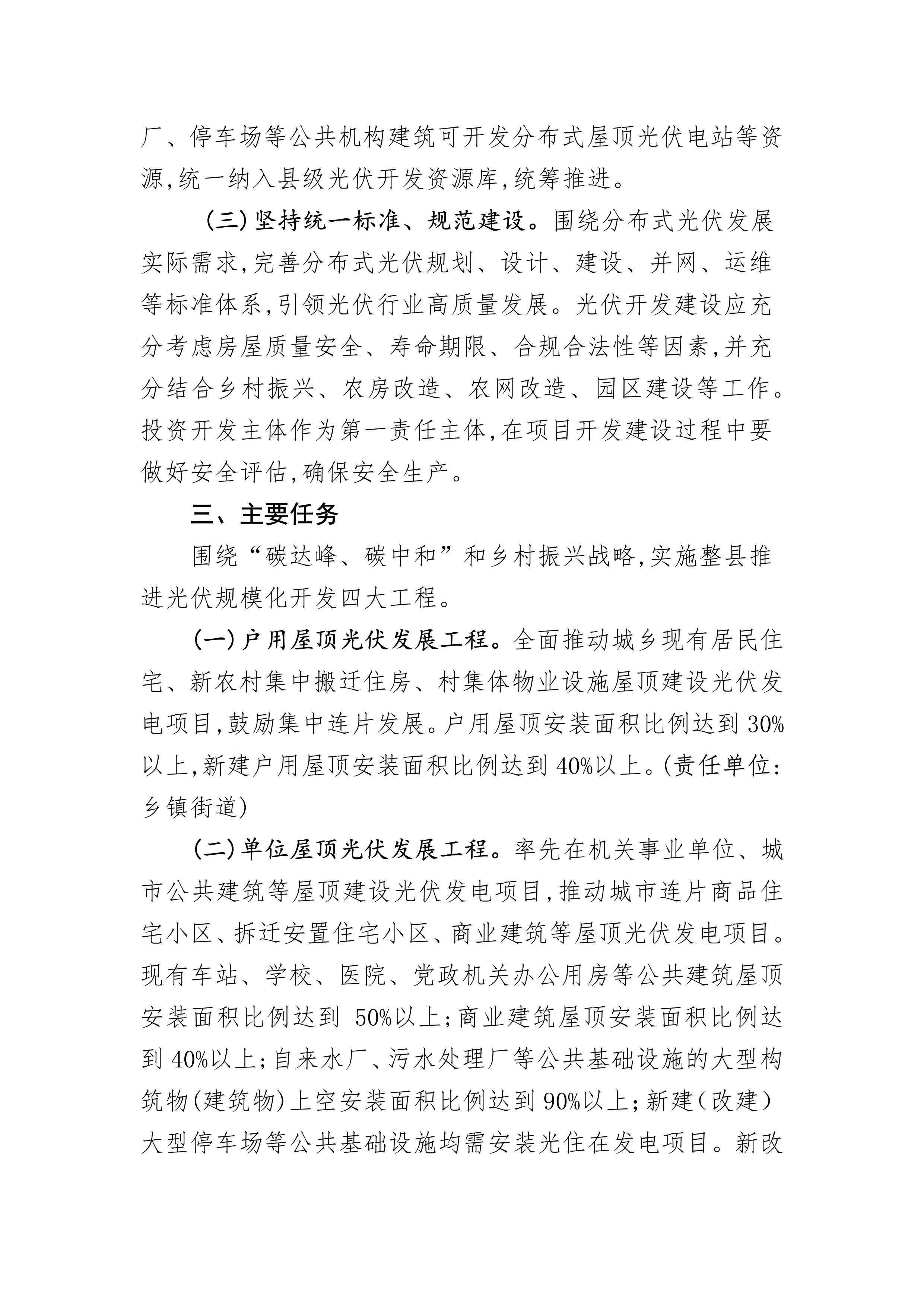《方案》提出围绕“碳达峰、碳中和”和乡村振兴战略,实施整县推进光伏规模化开发四大工程。
