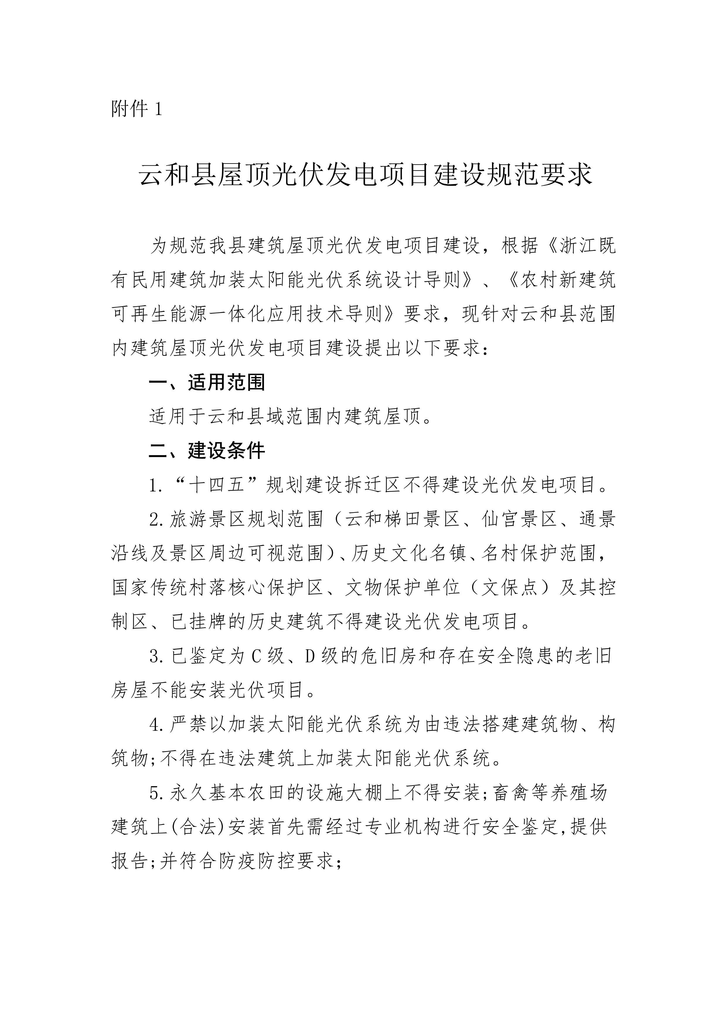 最后,《方案》对云和县屋顶光伏发电项目建设规范做出要求。